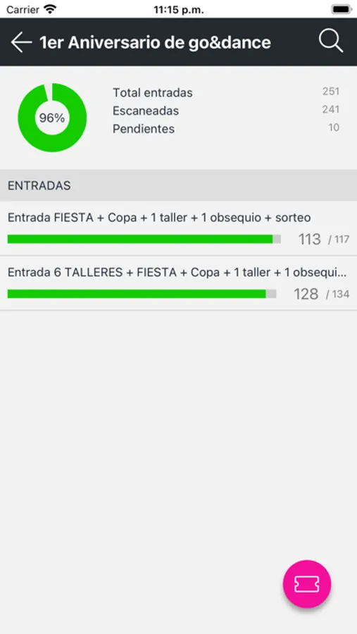 - Consulta la cantidad de entradas que has escaneado y las que quedan pendientes.