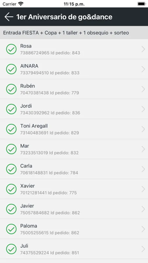 Con esta aplicación puedes gestionar los asistentes a tu evento de salsa que han comprado entradas a través de go&dance.