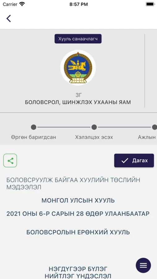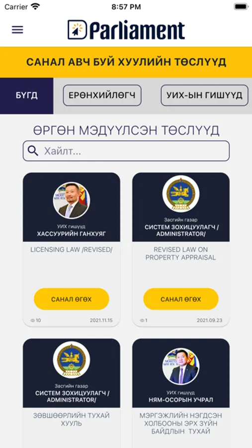 Энэ аппликейшн нь иргэд, эрдэмтэн судлаачид, сонирхсон хэн бүхэн парламентад өргөн баригдсан хуулийн төсөл бүрт болон цахим системд байршсан нийтийн санал асуулга зэрэгт нээлттэй саналаа өгөх нөхцлийг бүрдүүлсэн. Түүнчлэн Улсын Их Хурал буюу парламентын гишүүдэд өргөдөл, гомдол болон санал хүсэлтээ илгээх албан ёсны цахим талбар болж байгаа юм.