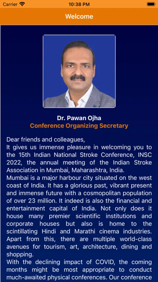 This application is intended for use by participants i.e. delegates, organizers & sponsors to cover the entire gamut of activities beginning from registration, scientific programme updates, details of conference etc.. This is an interactive app that will help delegates connect with each other as well as the faculty before, during and even after the conference.