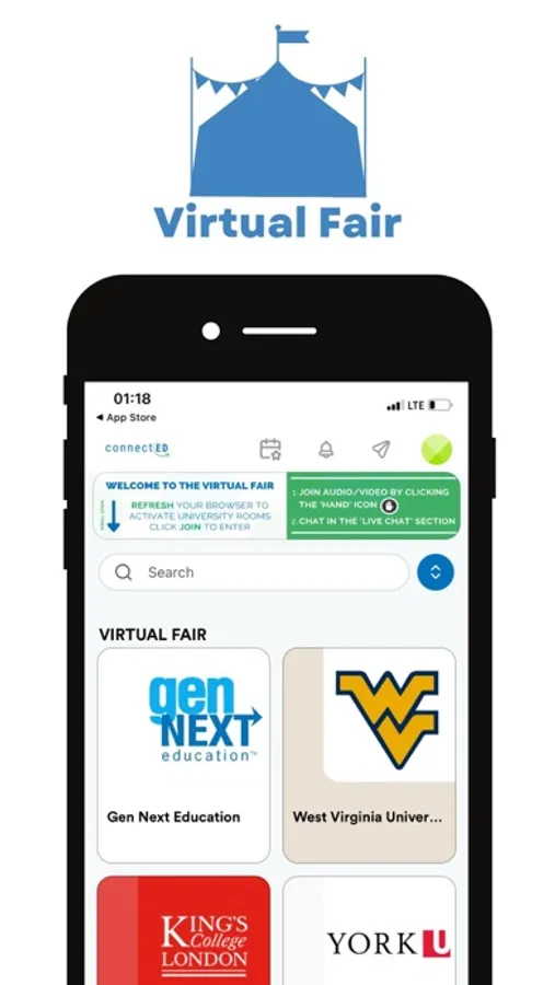 connectED helps you explore overseas degree programs & universities, meet university representatives one-on-one, attend knowledge-building sessions, participate in university info sessions, compete and win prizes, and make the college search process engaging, fun, and interactive. Explore virtual university hubs, discover programs, meet admissions offices, current students, and faculty.