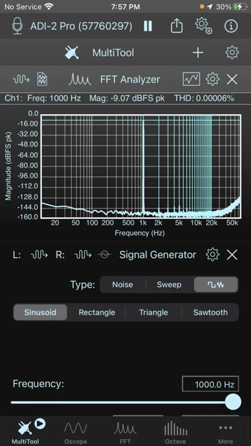 - Dual-channel System Analyzer (Dual FFT analysis with support for Frequency Response Magnitude/Phase, Phase Delay, Group Delay, Coherence, Impulse Response and Cross-Correlation)