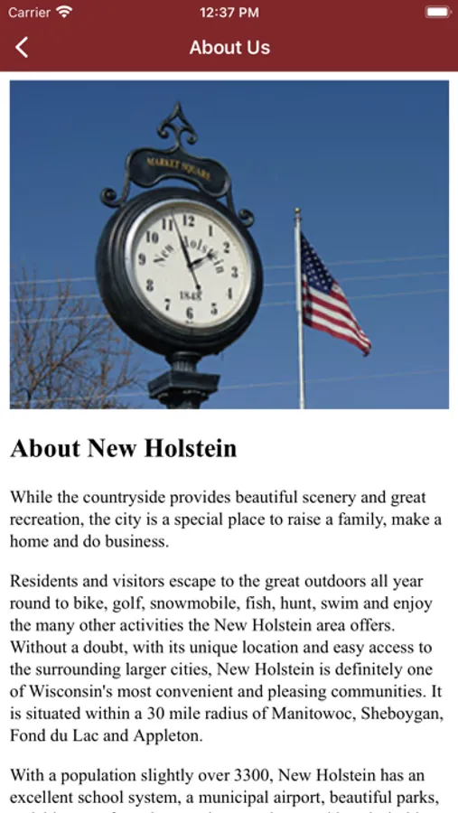 The official City of New Holstein app gives you a personalized window into what is happening in the city. With features like government, recreation, calendar and report an issue, you'll find it easier than ever to stay connected with the city of New Holstein, with just a few taps on your mobile device.
