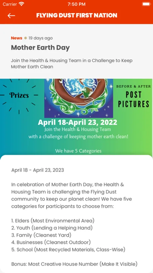 Welcome to the Official App of the Flying Dust First Nation! We have developed the Flying Dust First Nation app to be a communications platform for our community. Our app helps Flying Dust First Nation staff, community members, band members, and the general public to keep up with goings-on around the Nation.