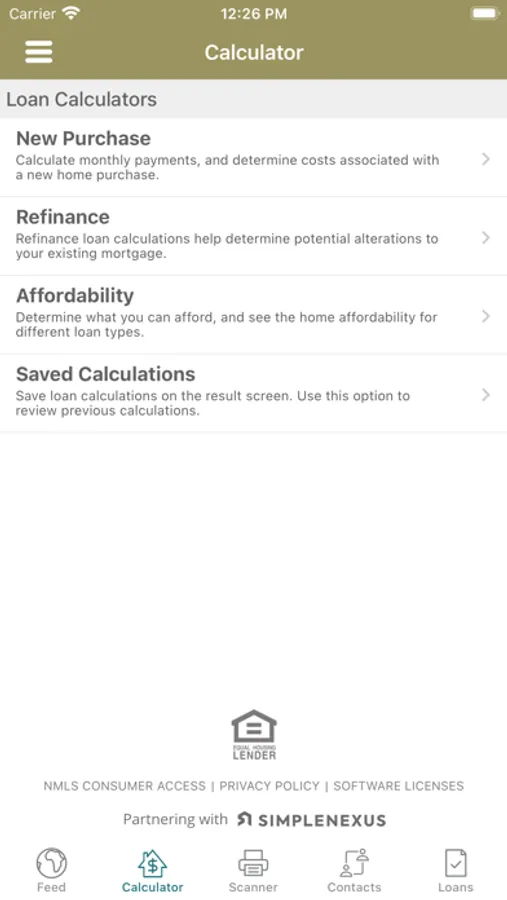 * Easily access contact information for your loan officer and real estate agent and share this information with your family and friends.