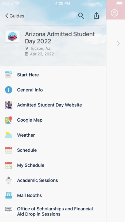 This is the official app for the University of Arizona Enrollment Management Programs such as Admitted Student Day, Destination Arizona, Wildcat Welcome and Family Weekend. With a simple download, you'll gain access to the latest schedules, maps and other relevant information intended to help you get the most out of your experience with us.