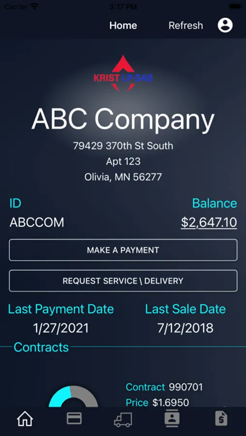 Information at your fingertips! This app gives you direct access to your account balance, location and contract information. It also gives you the ability to store and process payment and request service work and deliveries directly through the app.
