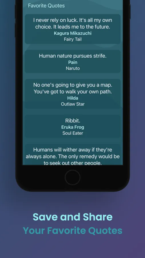 Mochinyo - Anime Quotes brings to you the best quotes from all the best animes! Find wisdom, entertainment, motivation and inspiration from all of these quotes. Keep your favorite quotes saved, and even share them with friends!