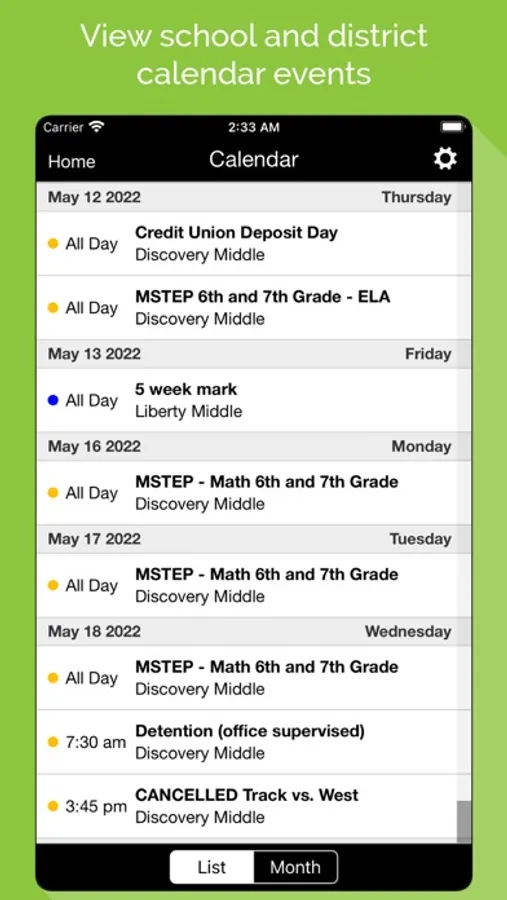 Use School Calendars and select the schools you want to track so you are aware of upcoming school holidays and important events such as district board meetings, parent teacher conferences, sporting events, vaccinations, etc. You can easily add school or district events to your own native Calendar app and create alerts so you don’t miss any important events.