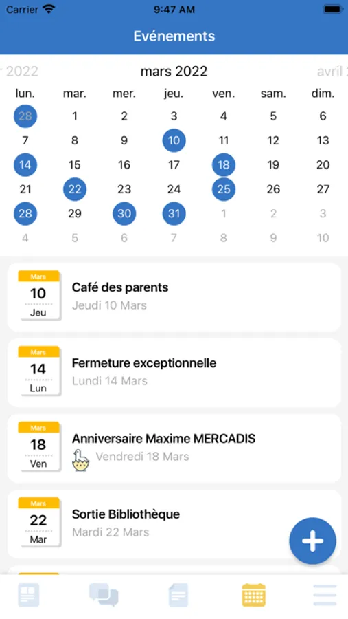 - Accéder au calendrier de la crèche pour retrouver les temps forts