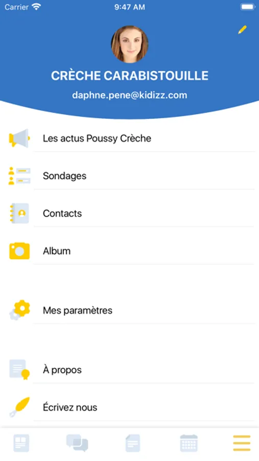 - Envoyer des messages aux professionnels de la crèche via une messagerie dédiée