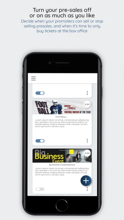 turn your presales off or on as much as you like, so you can decide when your sellers can sell or stop selling tickets and it's time to only sell tickets at the box office,