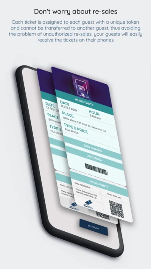 FORGET ABOUT RESALE, each ticket is assigned to each guest with a unique token and cannot be transferred to another guest, thus avoiding the problem of unauthorized re-sales,