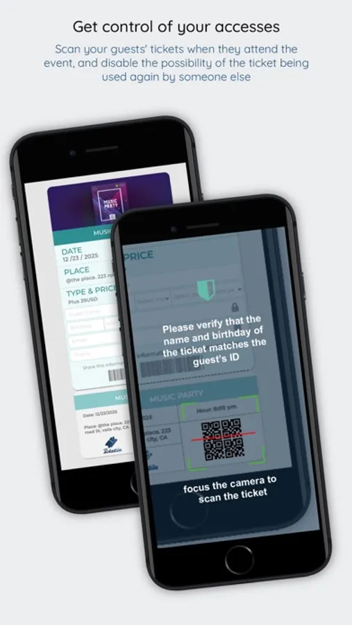 control access with the ticket scanning system, which allows you to have metrics and analytics of your access, know who attended the event and who has not yet arrived, which promoter of your staff made the sale of said ticket, among other relevant information about your events.