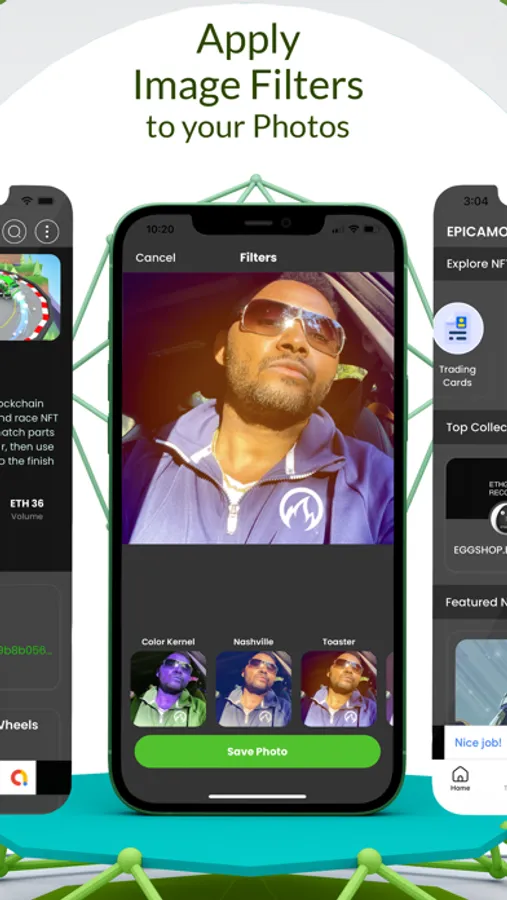 Image Filer → Upload your image and apply Image Filters, the app will prompt you to allow access to the Photo library, if you you denied permission and want to later allow the app access to your Photo library, then can go to the iPhone Settings → EpicAmorNFT → Photos (select photos or all photos)