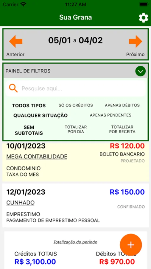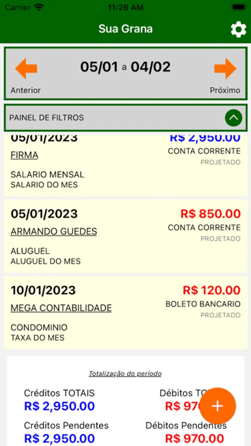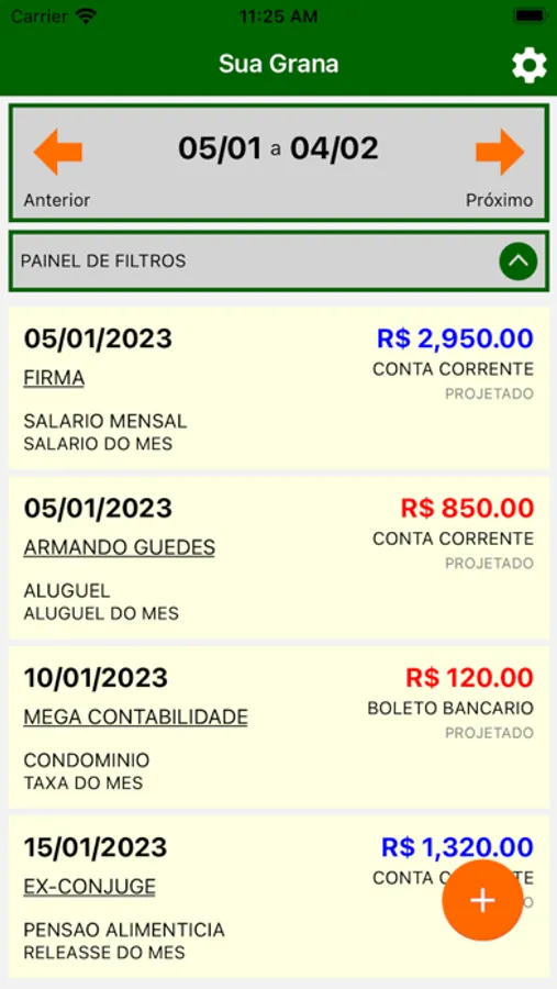 Cadastre suas receitas e despesas recorrentes e deixe que o aplicativo monte o planejamento financeiro pra você automaticamente.