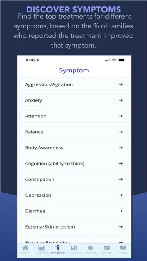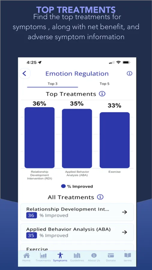 top-rated treatments for any of over 20 symptoms, such as language, social