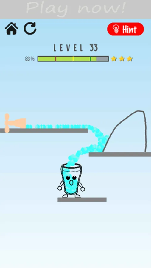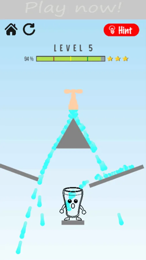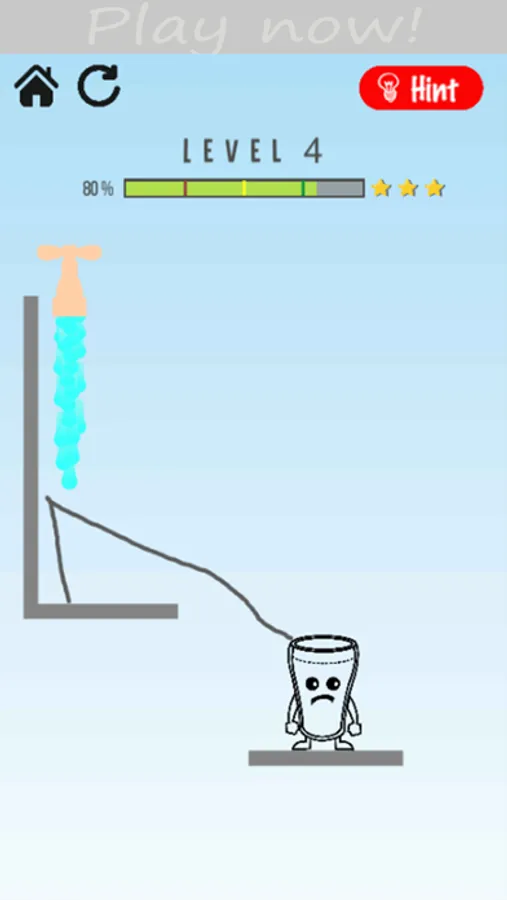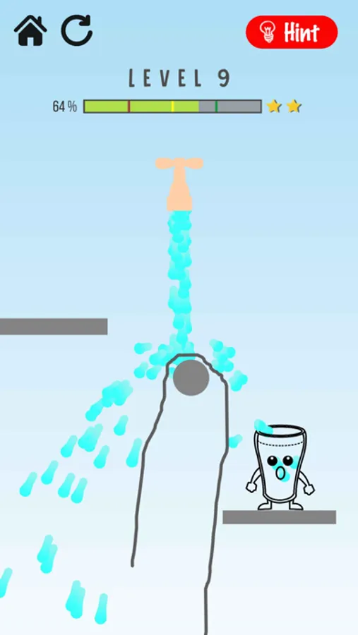 The game is about making the glass happy. Use your fingers to drag on the screen to draw lines which let the water out of the tap to fill the glass and make it happy. Only limited water is available on the tap. Water from the tap is limited though! Good game for you to spend time with. Around 100 levels to play