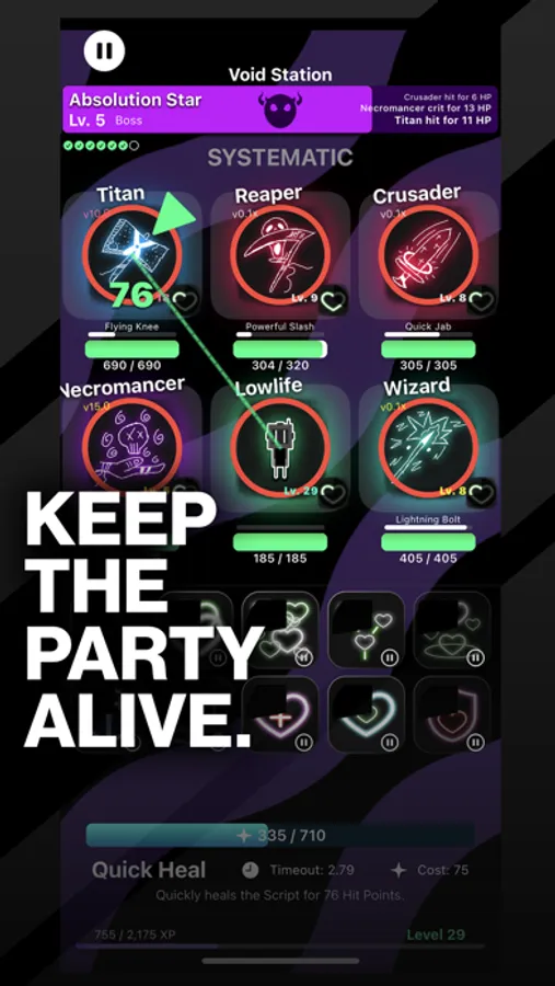 Lowlife places you in battle with a variety of weak and powerful Villains, equipped with only a variety of healing spells to keep everyone (and yourself!) alive. Spend your gained Parameter Points to build the perfect healer and fit your play style. Sprinkle a little of your personal playstyle on top by spending Node Points in one of three skill trees to build your perfect healer specialization. You'll need it to get the highest scores on the Global Leaderboards.