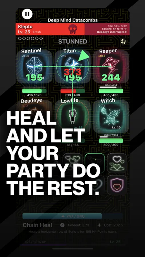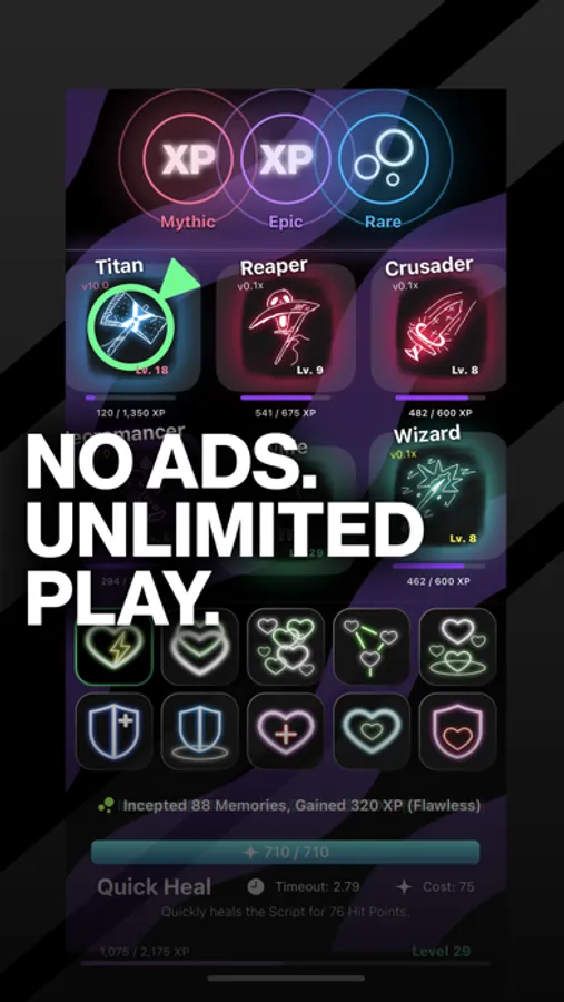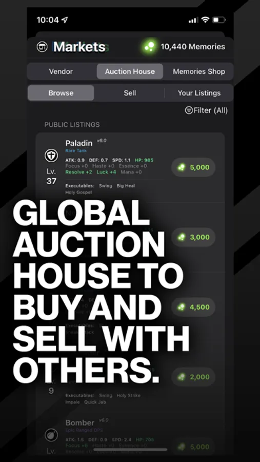 Throughout the Healing Simulations, you will incept Memories which can be used to trade for new Scripts - or if you have downloaded Scripts with their own god-rolled skills, level them up with Memories or by taking them with you! Sell your extra Scripts in the Auction House for extra Memories to spend. Also shop for other worldwide players' listed Scripts to use for your own.
