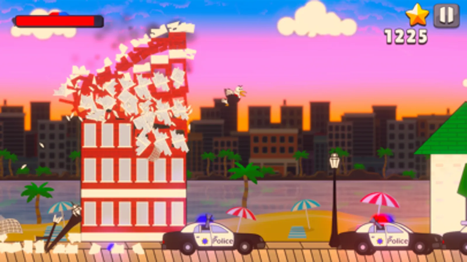 Seagull Smash is a thrilling endless runner destruction game where players take on the role of a seagull on the run. Beginning with a daring prison break, players must smash through a coastal city while being pursued by police and other enemies.