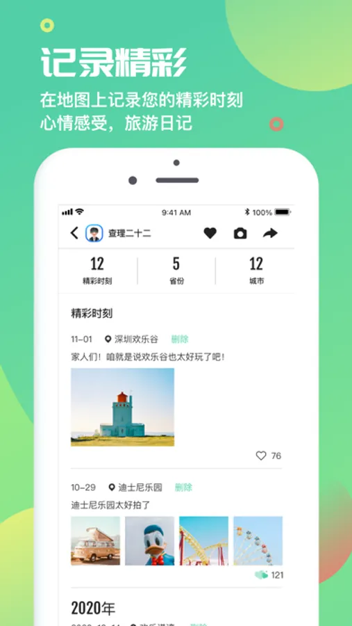 在地图上记录您的足迹,记录分享精彩时刻。可添加挚友,知道Ta的位置,让心的距离更近。可以探索其他人在地图上不同位置记录的精彩时刻,放眼看世界。