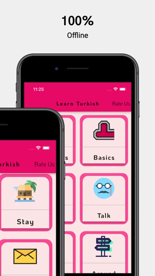 • Over 100 different beginner and intermediate lessons covering Turkish words, phrases, grammar, and pronunciation