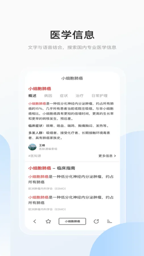 通过文本和语音两种形式进行医学内容检索,并分析用户检索意图,推荐结构化展示的医学信息
