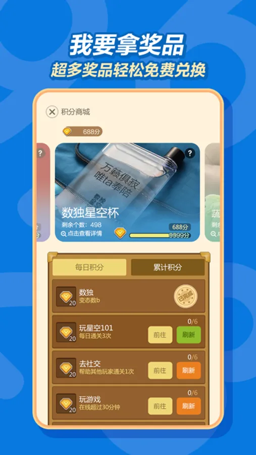 这是一个超有爱的数独游戏,内设积分商城,十多种热门奖品供玩家兑换;同时内设“希望小学”活动,玩家们可以一边玩游戏一边做公益,拿奖的同时也超有成就感;