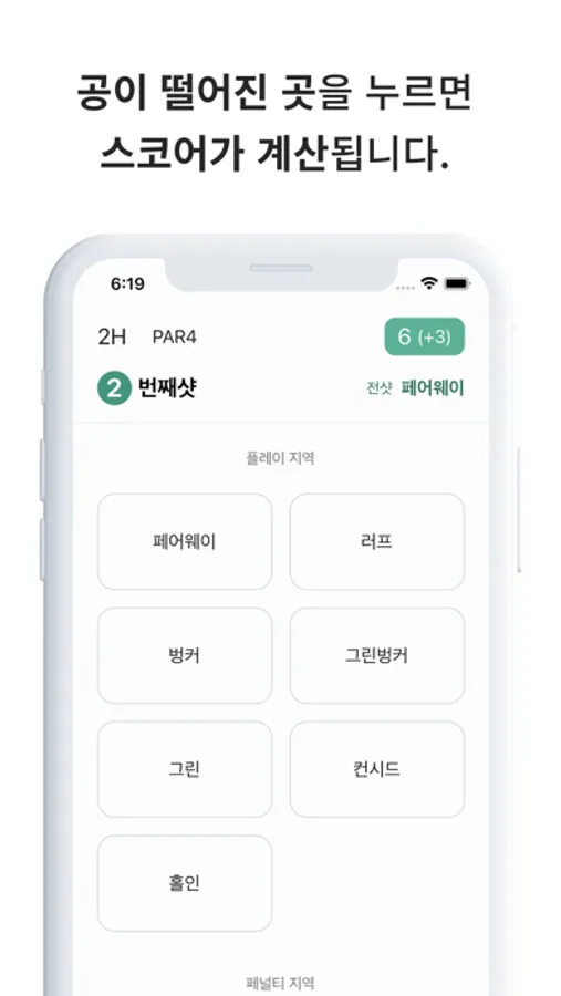 샷 이후에 공이 떨어진 위치를 누르면 스코어가 계산됩니다.