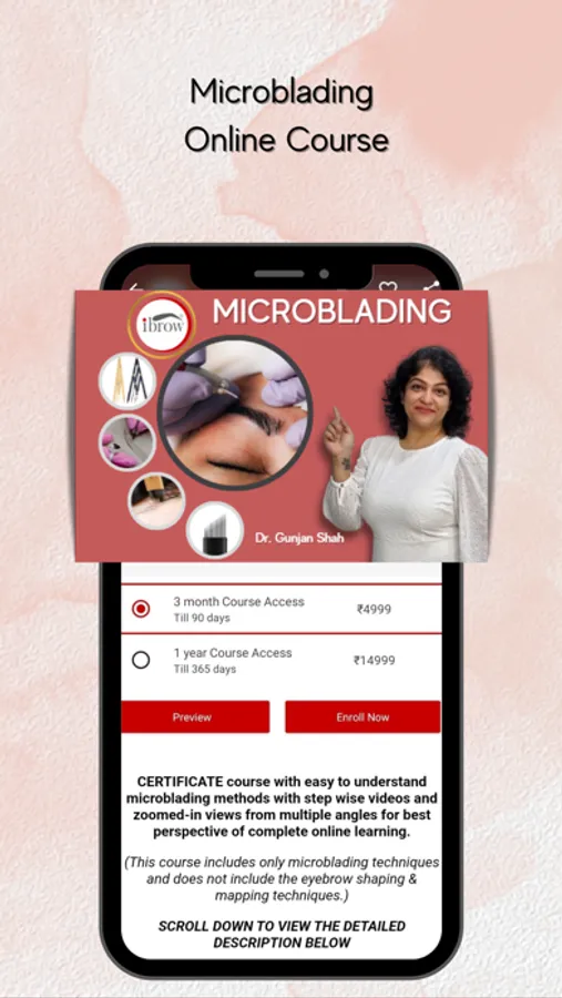 All the courses listed in the app are crafted and designed by the ibrow Academy, which was the first academy for introducing such extensive and detailed PMU (Permanent Makeup) courses in India. Under the leadership of Dr. Gunjan Shah, ibrow Academy has successfully trained hundreds of doctors, aestheticians, makeup artists, and tattoo artists all over India, making it the premier destination for those looking to learn the art and science of Aesthetics and permanent makeup.