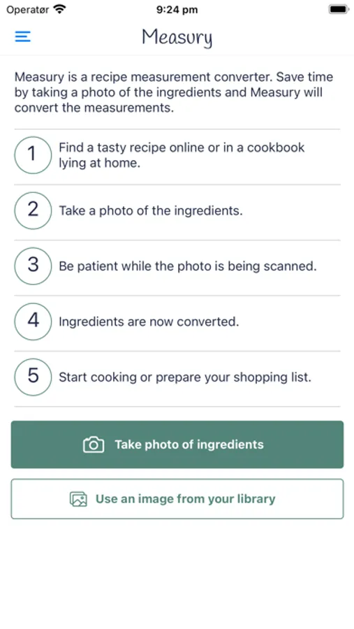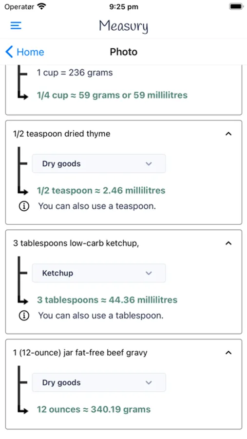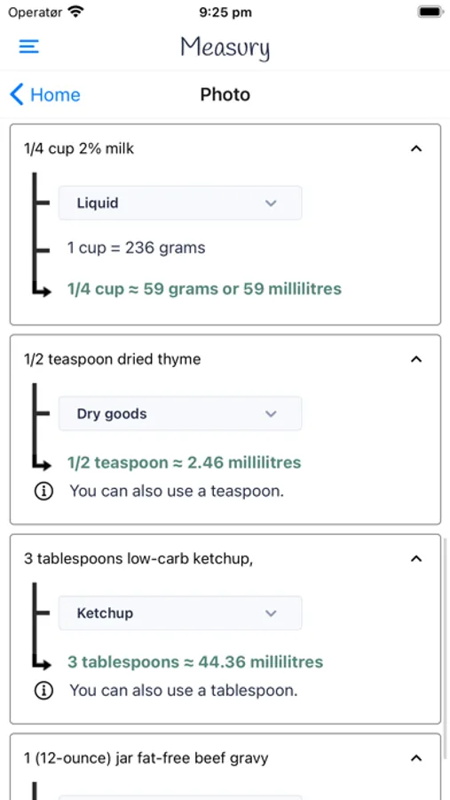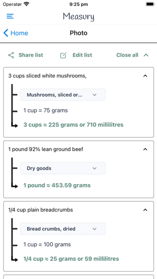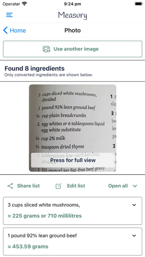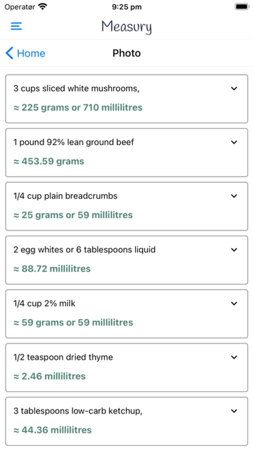 Measury is a recipe measurement converter that converts grams, kilograms, ounces, pounds, cups, decilitre and milliliters with your camera.