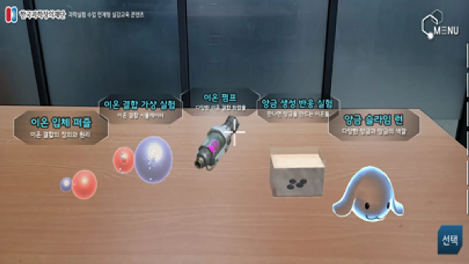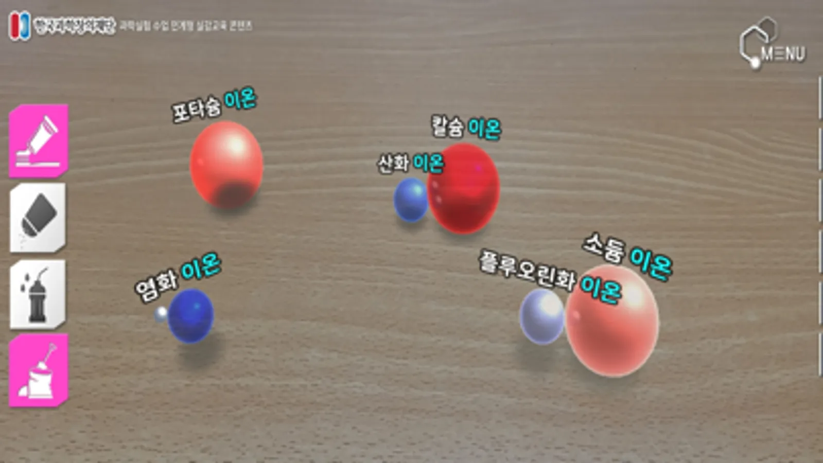 ㆍ [이온 입체 퍼즐][이온 결합 가상 실험][이온 펌프][앙금 생성 반응 실험][앙금 슬라임 런] 5가지 활동으로 구성되어 있어요.