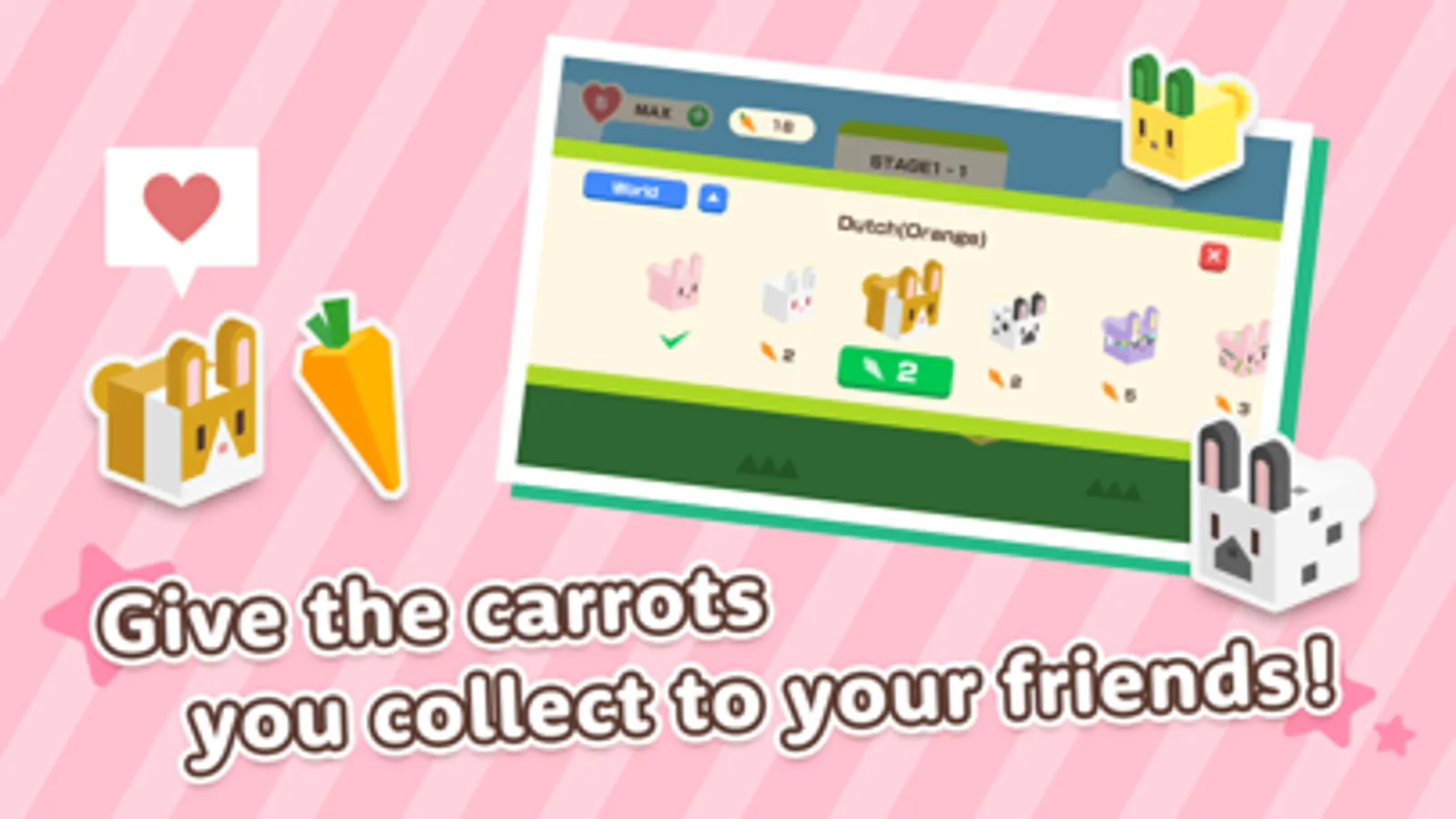 You can also play with your fellow rabbits by giving them carrots that you pick up on stage, and they can switch places with the pink rabbit.