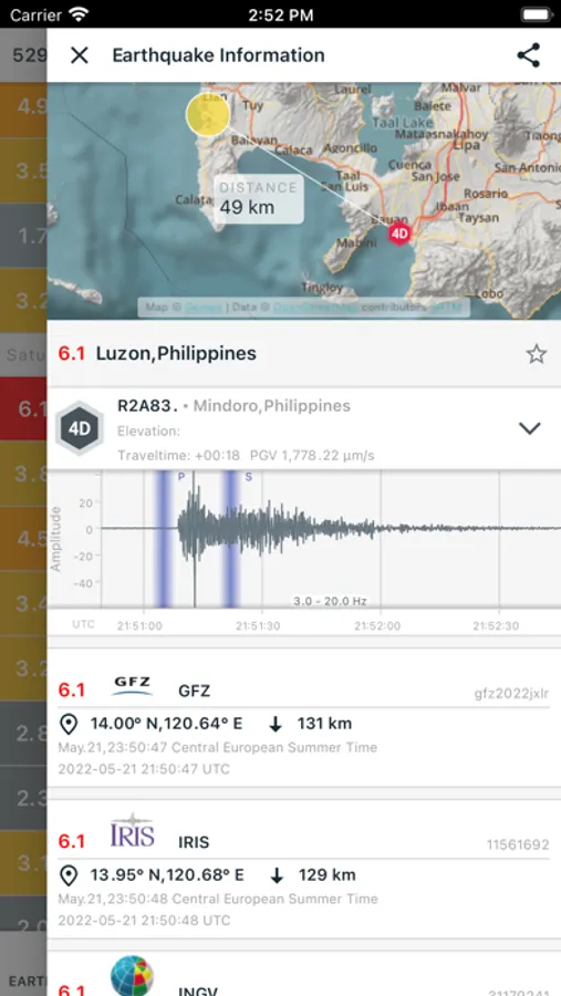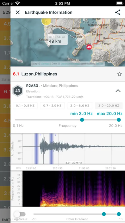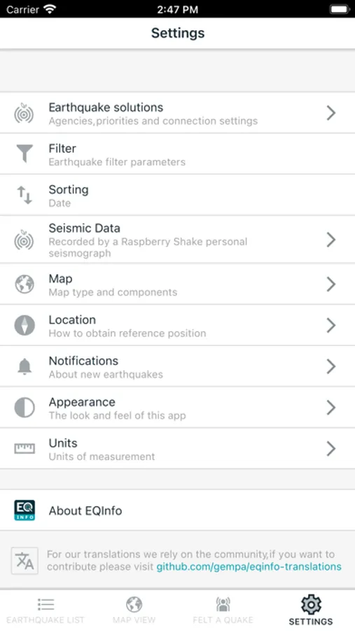 EQInfo shows earthquake information world-wide. Information can be filtered by region, magnitude and agency. It provides system notifications and social media sharing options.