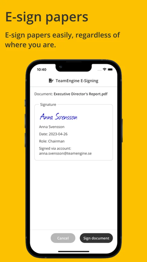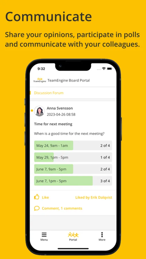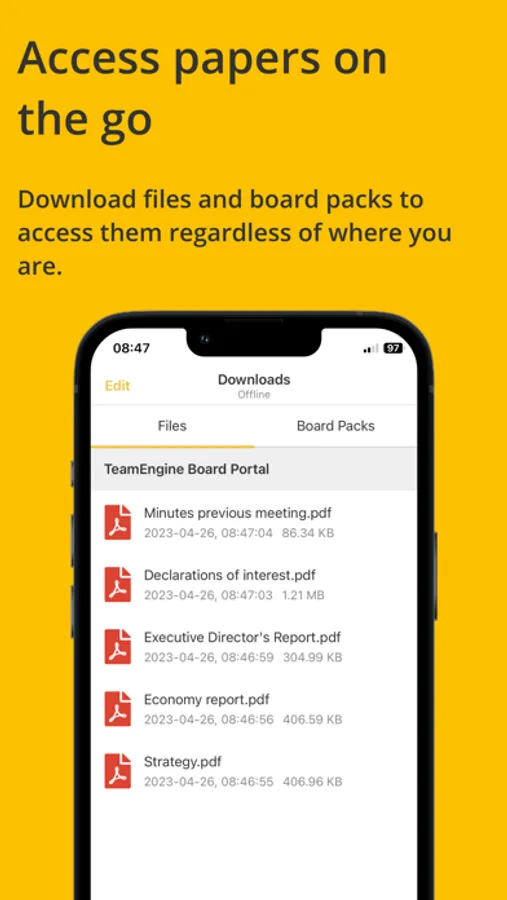 Get a clear overview of all future meetings and access agendas, papers and practical details all in one place. Read papers and make annotations that can easily be shared with other members. Download files and board packs to access them offline. You can e-sign papers with a secure digital signature, regardless of where you are. Use forums in your portal to share your opinions, participate in polls and communicate with your colleagues.