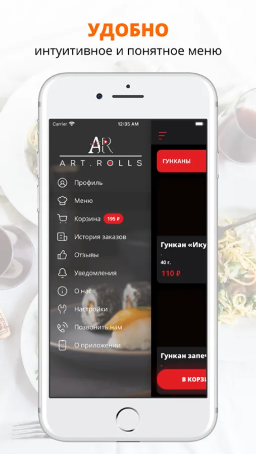 Воспользуйтесь удобным приложением для заказа еды «ART.ROLLS».
