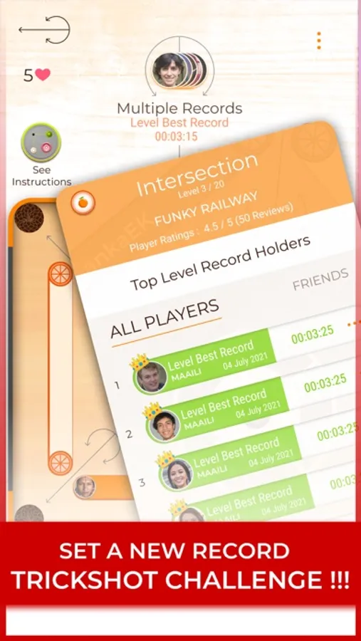 Experience the household game of Carrom in a revitalizingly modern graphics and joyfully nostalgic gameplay in Orange Carrom. Whether you are a casual Carrom player who enjoys a classic carrom experience or a mad tinkerer who likes challenging yourself and others with your trickery and wit, Orange Carrom has got you covered. With our Robust Trick Shot mode, the possibilities are limitless, WE DARE you to get bored of it!!! Get ready for the genre redefining experience with Orange Carrom as it will leave you wanting for more, the more you play !!!