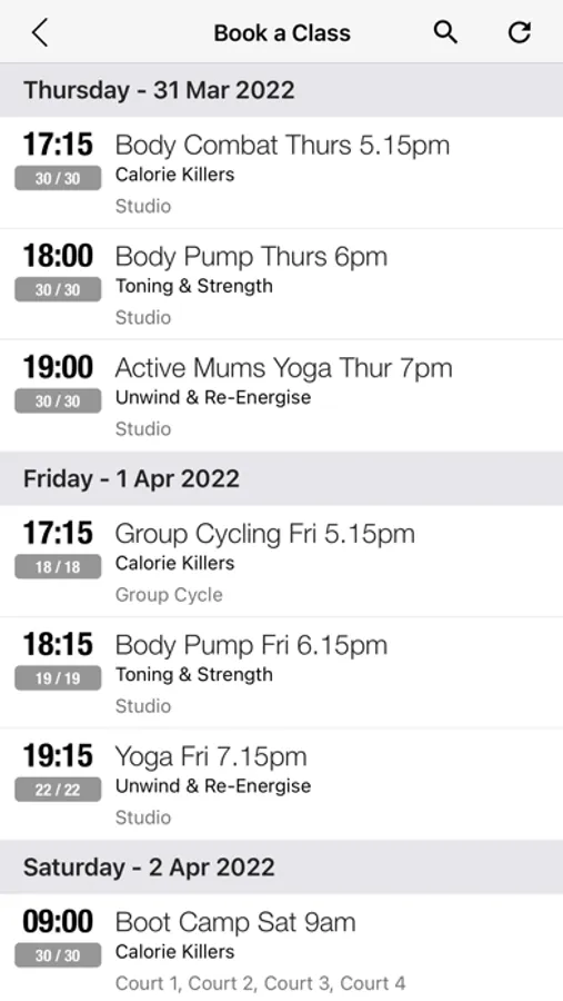 Get real-time access to your centre’s timetable for fitness classes, sports and swimming.