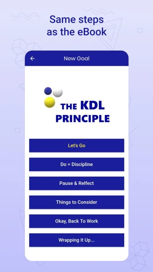 It can be considered as the eWorkbook for The KDL Principle, a simple book with great depth, which teaches a straightforward principle for achieving goals and maintaining a fruitful life. Each question will help you think clearly and deeply about your goals, thereby highlighting likely issues, presenting you with possible opportunities, and helping you gain alternative perspectives.