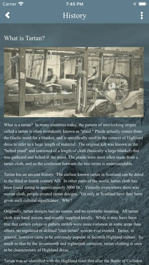 FREE to download directory APP showcasing tartan and other traditional Scottish specialists. The app has information about the history of Tartan, Scottish Clan info and crests. The app will also showcase some of Scotland’s best producers. Categories include; Independent Whisky Shops, Tartan Mills, Kiltmakers & Tailors, Sporrans & Shoes, Bagpipes.