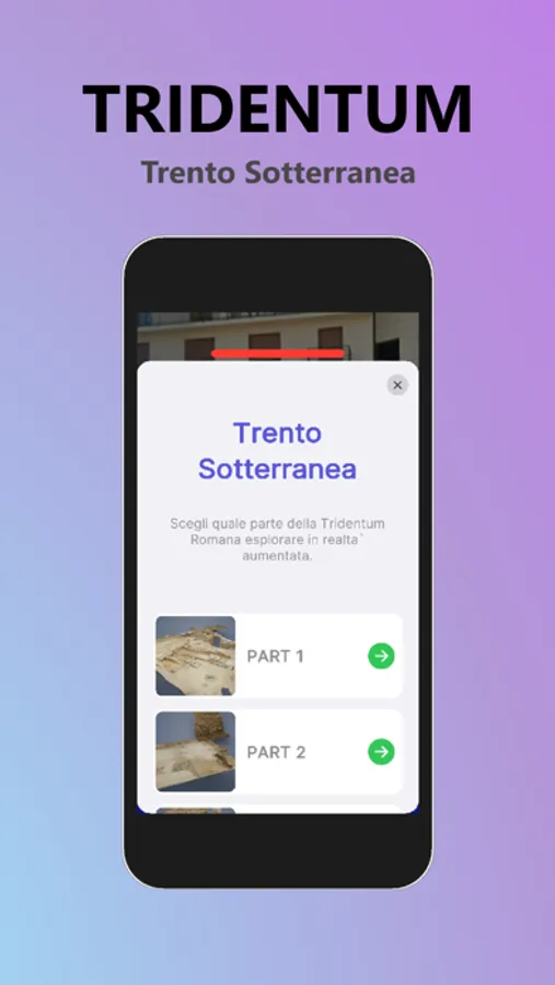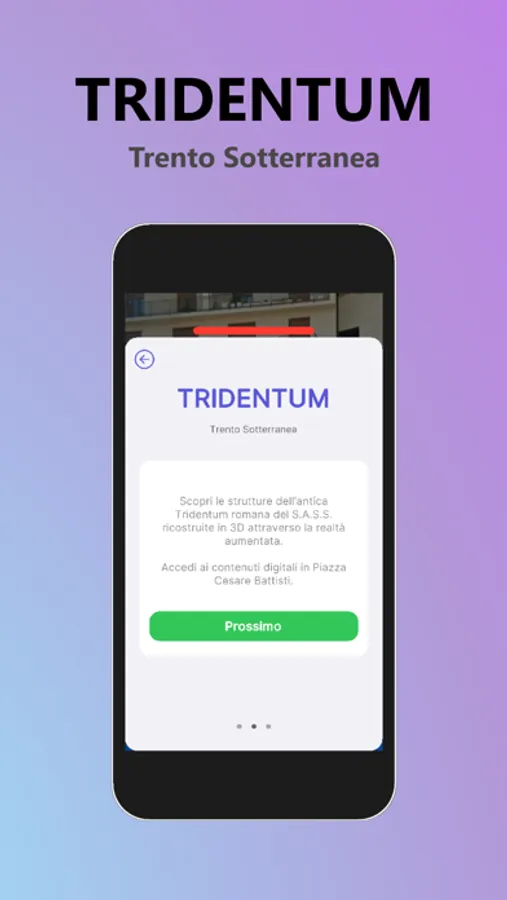 Trento Sotterranea is an augmented reality application for visualizing the digital reconstruction of some structures of the Roman period (S.A.S.S.) from the Cesare Battisti square above.