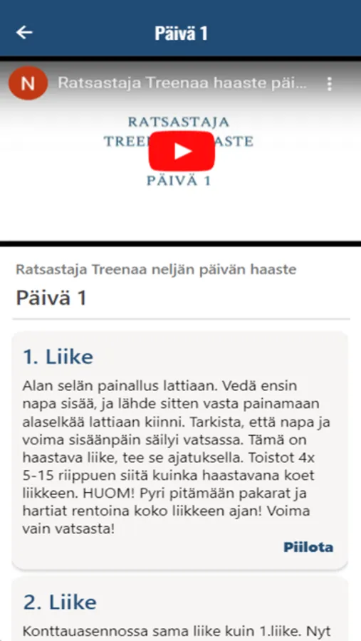 Jokaisessa videossa on sekä kirjallinen että puhuttu ohjeistus. Jokainen haaste kestää 21 päivää ja jokaiselle päivälle on oma treeninsä.