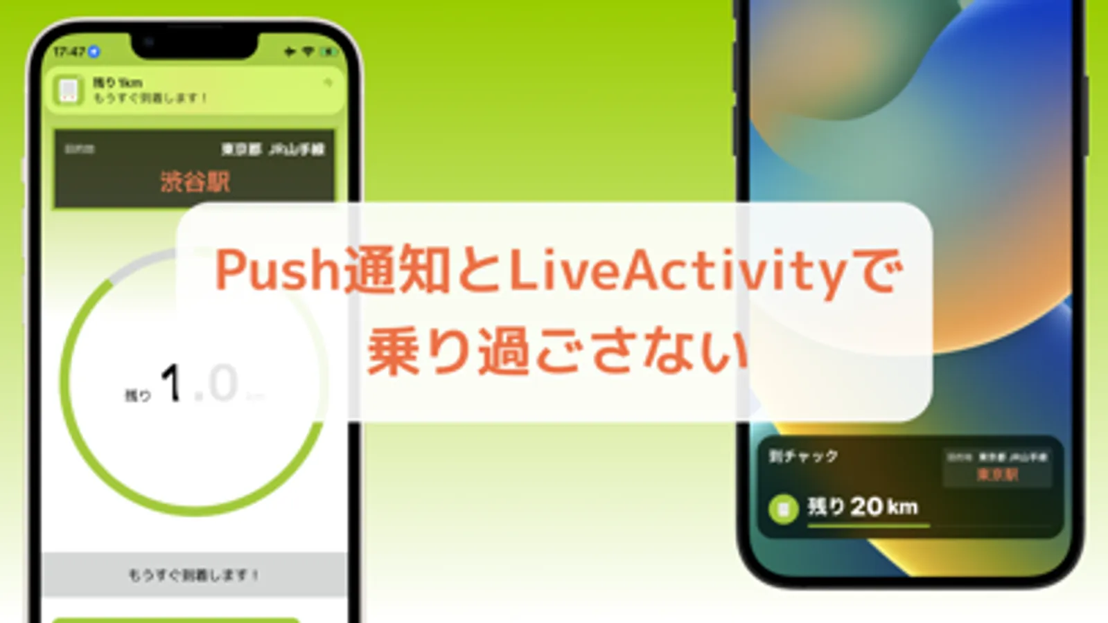 電車に乗った時に目的地を設定すると、到着間近にPush通知が届く!