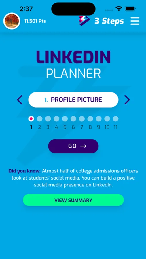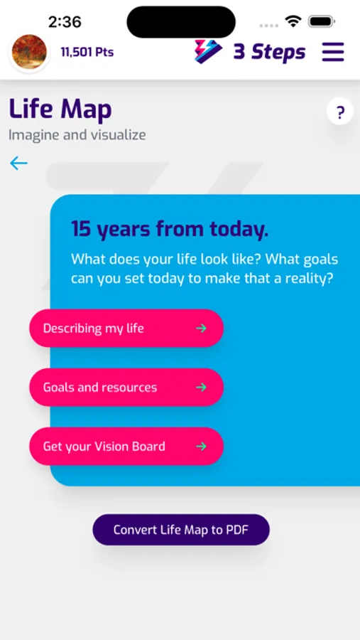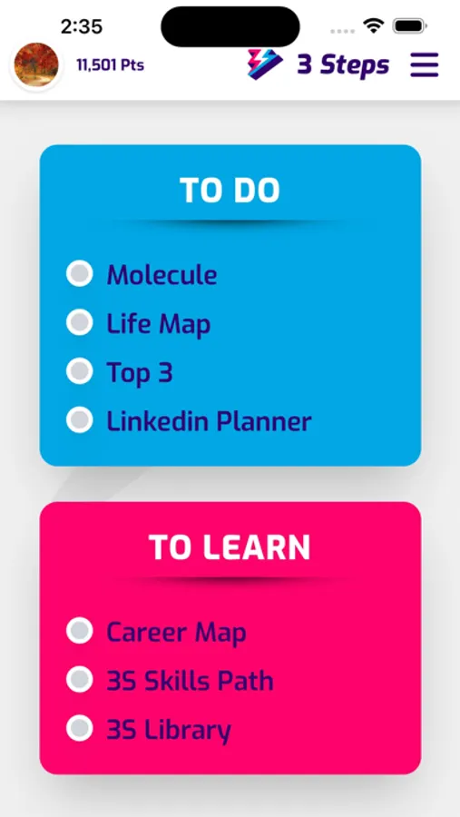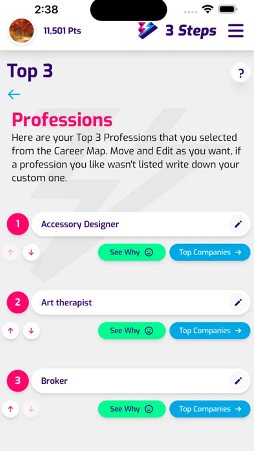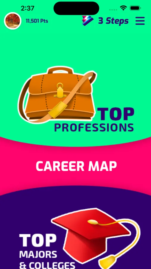 3Steps is a UNIQUE app that helps teens plan their future in an entertaining way. Today, teens are not sure about what to study and where AND THAT GENERATES STRESS AND ANXIETY. 3Steps is designed TO TAKE SOME OF THAT STRESS HELPING them answer 3 questions : Who am I? Where am I going? What's the plan?