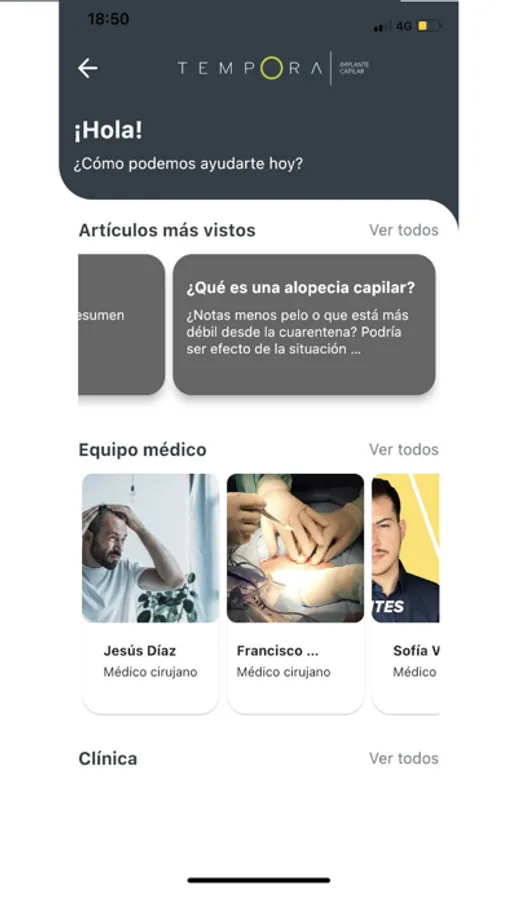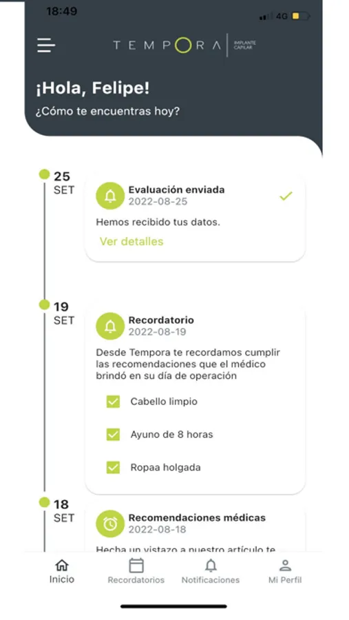 El portal de Clínica Témpora es una aplicación que busca acompañar a los pacientes atendidos por la Clínica durante su proceso de recuperación y post-operatorio.