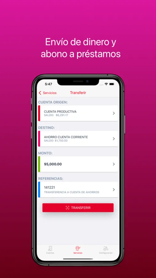 Envía dinero de una cuenta a otra, realiza el abono tu crédito con el saldo de tu ahorro, o envía dinero a la cuenta de ahorro de otro socio que previamente registres.