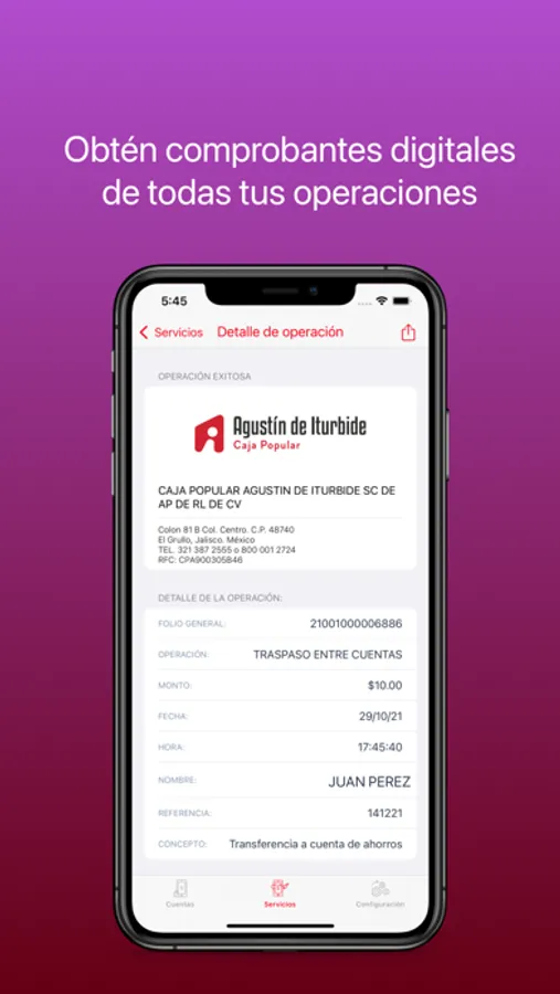 * Obtendrás un comprobante digital por cada operación realizada