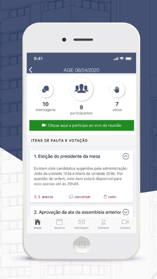 - comunicação entre síndico e moradores com controle de pendências, grupos de discussão, achados e perdidos, avisos, manutenção, etc (com moderação).