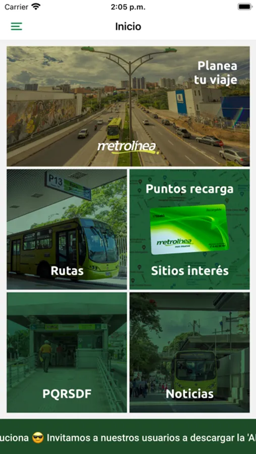 Metrolínea desarrolló una aplicación móvil que pretende acercar a los usuarios con la operación y demás servicios que ofrece el sistema integrado de transporte masivo (SITM). La aplicación permitirá que los usuarios conozcan las rutas del sistema, paradas, puntos externos de recarga de tarjetas, sitios de interés, tramitar una PQRSDF y ver noticias recientes relacionadas a Metrolínea.